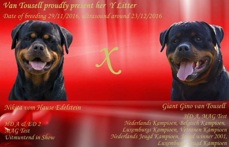 Als alles naar wens mag verlopen verwachten wij medio november 2015 pups uit