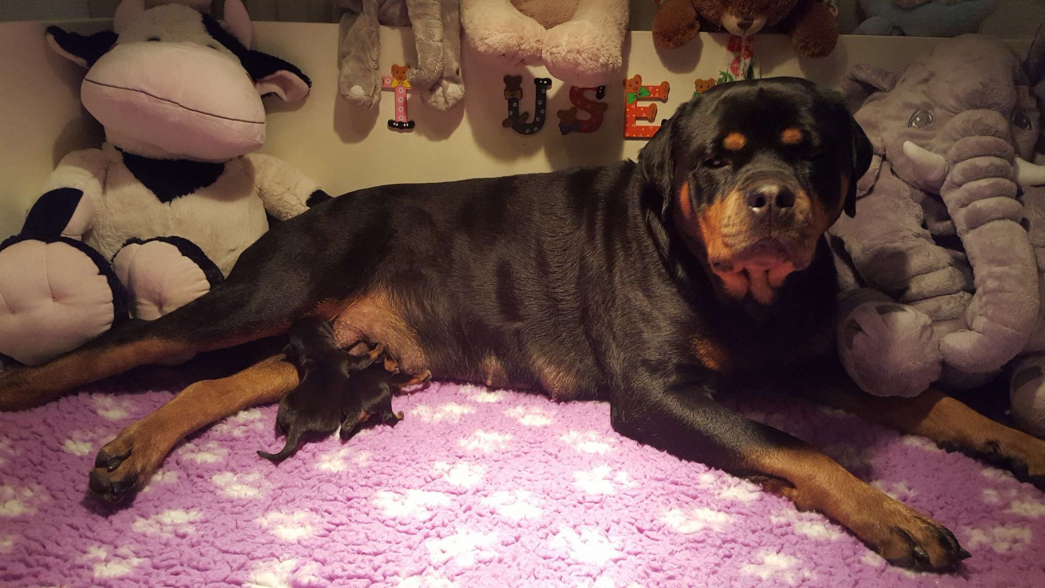 Grom Hof Chao en Nikita vom Hause Edelstein zijn de trotse ouders geworden van 3reutjes en 2 teefjes.